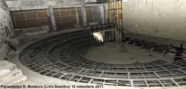 Administratorul firmei de construcţii „Acar-Cantarajiu”, Ion Cantarajiu, ne-a spus că situaţia la Preşedinţie nu s-a schimbat deloc din 2010, când, din suma de 218 milioane de lei, stabilită prin hotărâre de Guvern, s-au cheltuit o sută de milioane, plus alte şase milioane neachitate de către beneficiar. „Nu s-a alocat niciun bănuţ pentru continuarea lucrărilor. Acolo a rămas totul conservat… Mai e necesar de executat lucrări interioare, care ţin de electricitate, utilaje, reţele etc. În exterior, sunt necesare lucrările de amenajare, inclusiv darea în exploatare a celor două havuzuri din faţa instituţiei”, ne-a comunicat Ion Cantarajiu. El precizează că pentru clădirea Preşedinţiei ar mai fi nevoie de aproximativ 120 mln. lei, „dar, pentru 2012, nu avem nicio informaţie pozitivă. Toţi dau din umeri…”.