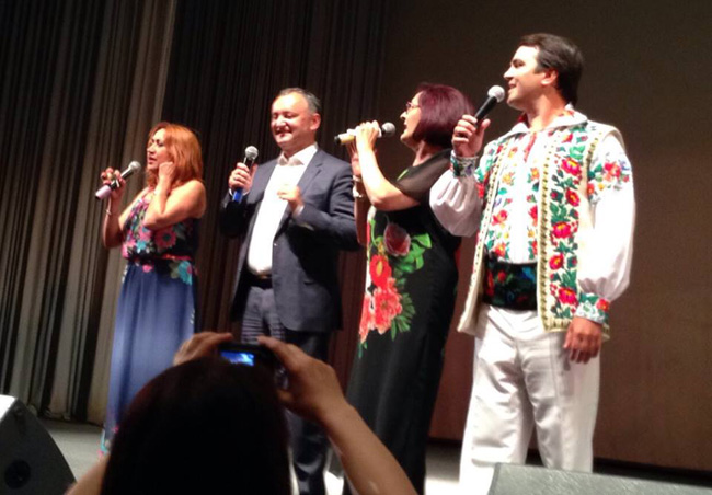 “Trăiască moldovenii!” şi “Hai, poehali!”. Cu aceste cuvinte, Silvia Grigore a coborât în sală, unde, încercând să câştige admiraţia spectatorilor, i-a întrebat într-un limbaj de mahala: “Oameni buni, cum vă sâmţâţ?”. Revenind în scenă, interpreta a strigat entuziasmată: “Igor Dodon! Preşedintele Partidului Socialiştilor din Republica Moldova! Cel care ne-a făcut astăzi această ocazie să fim împreună”. La rândul său, Olga Ciolacu, cunoscuta ca susţinătoate a ideii româneşti la Chişinău şi ca prietenă a lui Florin Piersic, a îndemnat sala să chiuie moldoveneşte.