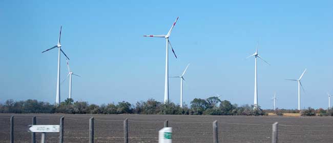 ¤ Turbinele eoliene funcţionează pe acelaşi principiu ca şi morile de vânt din antichitate: palele unei elice adună energia cinetică a vântului pe care o transformă în electricitate prin intermediul unui generator. În UE, Germania are cea mai mare capacitate de producţie de energie eoliană – de 27.214 MW, conform datelor din 2010, urmată de Spania, cu 20.676 MW, Italia (5.797 MW) şi Franţa (5.660 MW)