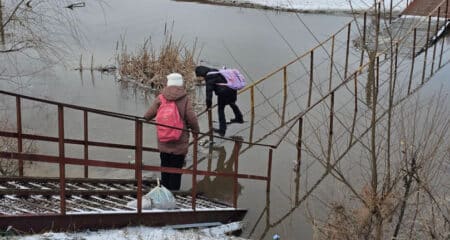 Scene periculoase la Bălți: Elevii traversează pe un pod inundat. Reacția Primăriei