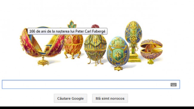 Doodle-ul creat de Google pentru a îl omagia pe bijutierul rus, Peter Carl Fabergé prezintă câteva modele de ouă Fabergé, pe care acesta le-a creat pentru prima dată în 1885. Deşi numele aurarului este unul de rezonanţă franceză, acesta este născut dintr-un tată german şi o mamă daneză, numele fiind moştenit de tatăl acestuia de la strămoşii hugenoţi, originari din provincia franceză Picardia.