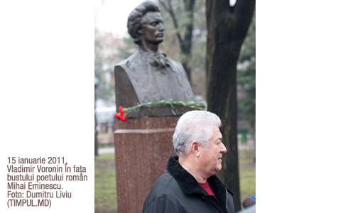 (Foto Timpul.md) Pamflet: Vladimir Voronin la bustul lui Mihai Eminescu