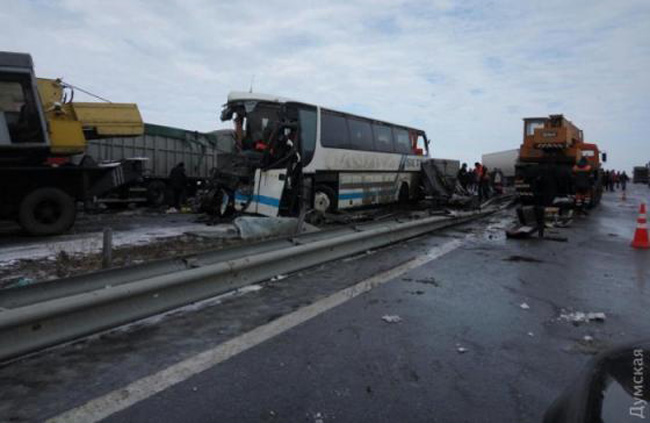 S-au ciocnit șase mijloace de transport. Șoferul autocarului cu numere de înmatriculare moldovenești Setra care circula pe ruta Moscova-Cahul a pierdut controlul din cauza poleiului și s-a tamponat în două camioane. Din cauza impactului, autocarul s-a răsturnat, și a provocat un alt accident cu al treilea camion, de care s-au ciocnit ulterior două autoturisme Chevrolet și Mercedes.
