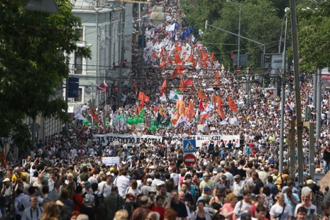 "Sunt peste 100.000 de persoane", a declarat Udalţov, liderul Frontului de Stânga. Poliţia, care menţionase iniţial cifra de 10.000 de persoane, la două ore de la debutul marşului a estimat că participă 18.000 de persoane.