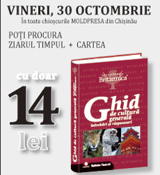 „Ghidul de cultura generala – intrebari si raspunsuri” – este titlul primei carti pe care o veti putea cumpara, la un pret simbolic, impreuna cu editia din 30 octombrie a ziarului TIMPUL. „Ghidul…” reprezinta o culegere care a pus fata in fata o mie de intrebari si o mie de raspunsuri cu ajutorul carora autorii va vor calauzi prin labirinturile cunoasterii acestei lumi misterioase si surprinzator de minunate. „Ce este o camee?”, „Ce este Cercul de Foc al Pacificului?”, „Cine a fost poreclit „Marele eliberator?”, „Cine este considerat parintele literaturii latine?”, „Cine a inventat submarinul?”, „Cate grame de aur fin contine medalia olimpica de aur?” – sunt doar cateva intrebari la care veti gasi raspunsuri in „Ghidul de cultura generala”.