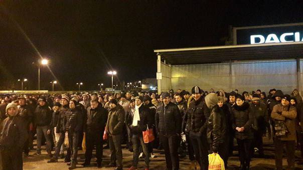 1500 de muncitori de la Dacia au protestat faţă de condiţiile de transport, iar producţia a fost oprită – FOTO