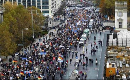 Cinci contramanifestații au fost organizate sâmbătă la Berlin. Una dintre ele, intitulată "Manifestație pentru un Berlin cosmopolit" și susținută de o gamă largă de partide politice și sindicate, a adunat în spatele Porții Brandenburg aproximativ 600 de persoane, potrivit poliției. Organizatorii se așteptau la mai multe mii de participanți, adaugă France Presse.