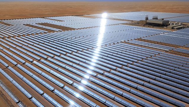 Parcul solar, format din şiruri lungi de oglinzi parabolice care concentrează radiaţia solară, acoperă o suprafaţă echivalentă cu 285 de stadioane de fotbal aflată în deşert, în apropiere de Madinat Zayed, o localitate la circa 120 km la sud-vest de Abu Dhabi, capitala federaţiei Emiratelor Arabe Unite.