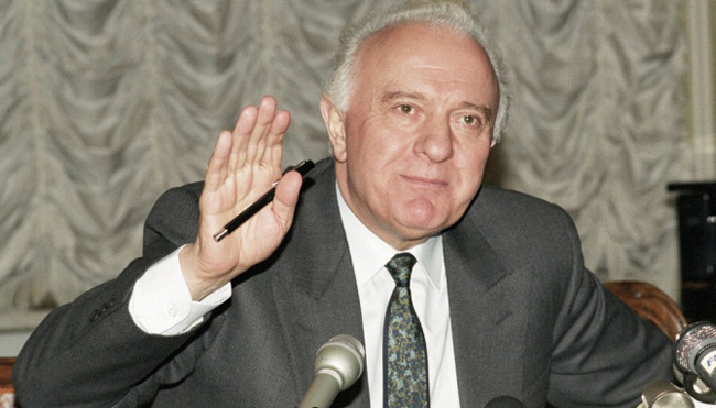 Eduard Șevarnadze a fost ministru de Externe al URSS în perioada lui Gorbaciov în anii 1885-1990. A susținut perestroika și ameliorarea tensiunilor pe plan internațional. În 1992 a fost numit președinte al Parlamentului Georgiei independe, iar în 1995 a fost ales președinte al Georgiei, rămânnd în funcție până în anul 2003, când a fost nevoit să-și dea demisia după „revoluția rozelor”.