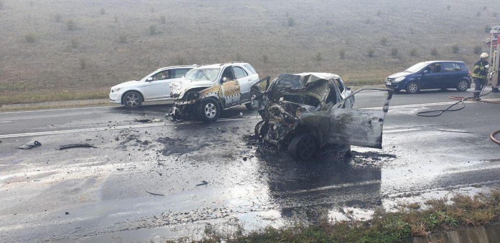 Totodată, doi șoferi au avut nevoie de ajutorul medicilor. Totul a avut loc în prima jumătate a zilei de două octombrie, în jurul orei 10.15. Poliția, pompierii și o echipă medical au fost chemați imediat la fața locului. În numai 15 minute, salvatorii au reușit să stingă complet flăcările, mașina însă a fost distrusă în totalitate. Ofițerul de presă de la IGP, Silvia Vetcu, a declarat că în coliziune au fost implicate două mașini și un microbuz marfar. Automobilul care s-a incendiat după impactul violent era condus de o șoferiță.