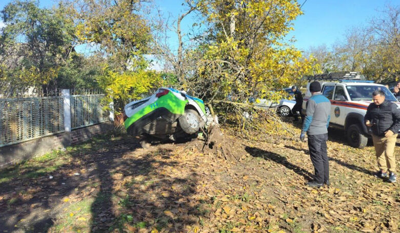 Pentru a evita impactul, șoferul echipajului de patrulare a virat brusc, iar pe carosabilul umed, mașina de serviciu a derapat, a părăsit drumul și s-a izbit violent de un copac.
