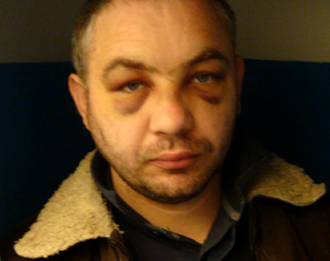 politisti in timpul protestelor. In urma multiplelor lovituri, aplicate de politisti, a fost internat in spital, avand trauma cranio-cerebrala inchisa si comotie cerebrala.