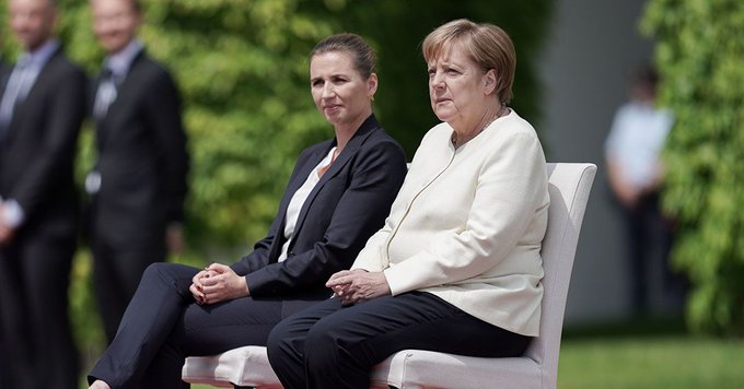 Angela Merkel a încălcat protocolul și a stat pe scaun la o ceremonie oficială, după episodul de tremur puternic de miercuri