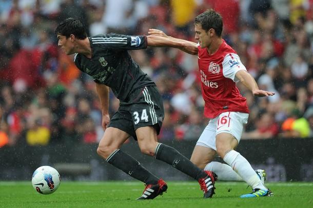 FC Liverpool s-a impus cu 2-0 în primul derby al sezonului din Premier League, pe terenul rivalei Arsenal Londra. Jucătorii lui Kenny Dalglish au înscris ambele goluri ale partidei în ultimul sfert de oră, după ce "tunarii" rămas în inferioritate numerică, odată cu eliminarea lui Frimpong.