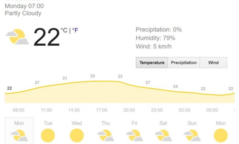În centru vor fi +34 de grade Celsius ziua, iar noaptea va fi +20 grade Celsius.