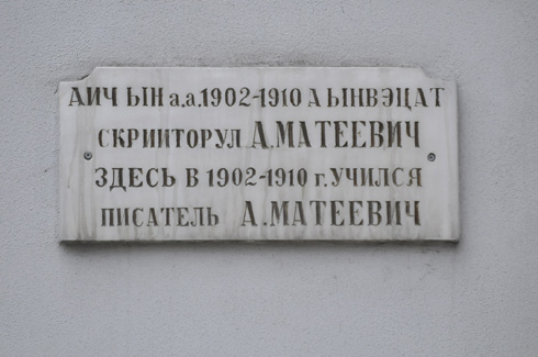 Placa se află chiar la intrarea în blocul II al Bibliotecii Naţionale şi anunţă că, în această clădire a învăţat în anii 1902-1910 scriitorul Alexei Mateevici. Directorul instituţiei, Alexe Rău, susţine că, pe vremea comuniştilor, a solicitat demontarea plăcii, dar a primit refuz de la Ministerul Culturii. „Ministru era Artur Cozma şi edificiul se afla în reparaţie, când am propus ministerului să schimbe placa, dar mi s-a spus să nu mă amestec”, afirmă directorul. După 2009, însă, chiar şi Rău a uitat de existenţa plăcii. El motivează acest lucru prin apariţia conflictului cu firma „Green Hills Nistru”, care intenţionează să construiască în vecinătate un bloc cu trei etaje sub sol, ceea ce ar pune în pericol clădirea istorică a bibliotecii. „Cozma a plecat, dar au venit ăştia cu construcţia şi ne mănâncă sănătatea. Esenţial este să salvăm clădirea”, consideră Rău.