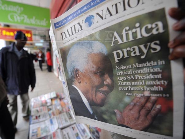 În afara spitalului din Pretoria în care a fost internat, sute de porumbei au fost eliberaţi marţi, în semn de transmitere a unui mesaj de pace şi de omagiere a eroului naţional, iar numeroşi anonimi au venit să improvizeze o noapte de veghe.