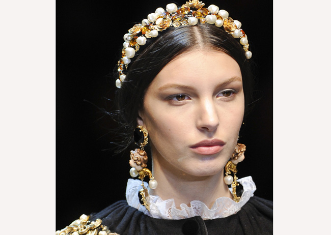 Într-un sezon în care designerii au fost cuceriți de baroc, răspândind din belșug aplicații opulente pe piesele vestimentare, am fi putut crede că vor renunța la bijuterii. Intră însă în scenă colierele somptuoase și cerceii-candelabru, cu cristale savuroase în nuanțe vibrante.