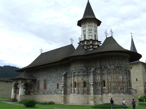 Biserica Învierii de la Suceviţa poartă însemnele artei bizantice ecleziastice unice în Europa. Partea exterioară a zidurilor este acoperită în totalitate de fresce datând din evul mediu. Frescele reprezintă o compoziţie sistematică care împodobeşte faţadele lăcaşului cu elemente plastice elegante şi culori armonioase ce se încadrează perfect în peisajul natural.