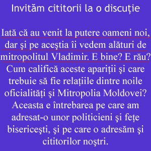Si, totusi, problema exista… O radioascultatoare recunostea la „Vocea Basarabiei” ca, dupa ce l-a vazut pe primarul Dorin Chirtoaca alaturi de IPS Vladimir, nu mai intelege ce politica se face in RM… Problema exista si, direct sau indirect, vizeaza si imaginea AIE din care face parte si PL, al carui vicepresedinte e Dorin Chirtoaca. Problema relatiilor dintre Stat si Biserica nu e noua. Cu toate ca, potrivit Constitutiei, Statul e despartit de Biserica, intre conducatorii acestora au existat intotdeauna „relatii” si o anumita „colaborare”.