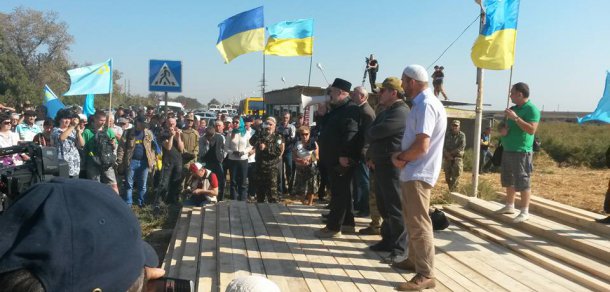 Activiștii au oprit accesul transportului de mărfuri în peninsulă și lasă să treacă doar transportul de pasageri, ca reacţie la încălcarea sistematică a drepturilor etniei băştinaşe din Crimeea. „Camioanele de cele mai multe ori se întorc și părăsesc zona”, spune șeful poliției din regiunea Herson, Ilia Kiva.