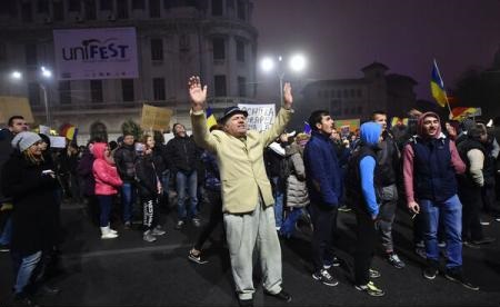Protestatarii, care au blocat bulevardul Nicolae Bălcescu, scandează "Colectiv, Colectiv", "Anticipate" sau "Solidaritate", iar unii dintre ei agită steaguri tricolore. De asemenea, o parte din oamenii prezenţi la manifestaţie au cântat "Noi suntem români".