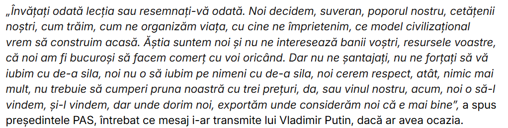 Această comunicare are și o componentă simbolică: transmite lumii că Moldova nu mai este periferia geopolitică care acceptă presiuni, ci un stat ce afirmă corect și deschis opțiunea sa de parcurs european.