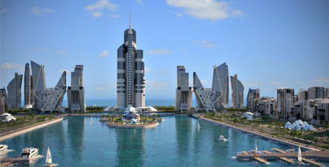 Khazar Islands sunt o dezvoltare de insule artificiale ce urmează a fi construite în Marea Caspică, la sud-vest de Baku. Potrivit www.capital.ro, prima fază a proiectului insulelor va include facilităţi rezidenţiale şi sociale şi restaurante, şi va fi finalizată în anul 2016. Turnul, care se estimează că va fi ridicat în 2018-1019, va face parte din a doua fază de construcţii.