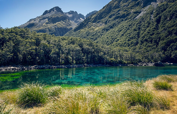 Blue Lake, care face parte din Nelson Lake, are o vizibilitate orizontală a apei de 70-80 de metri. Lacul este alimentat de Lake Constance, un lac glaciar din apropiere, iar puritatea lui se datorează unui baraj natural de pământ, aflat între cele două lacuri, care a avut rol de filtrare a apei.