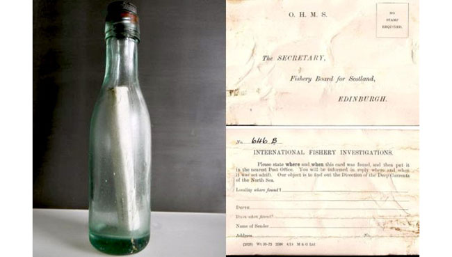 Yahoo scrie că Guvernul scoţian a lansat la apă, la începutul secolului trecut, peste 1890 de mesaje în sticlă, pentru a-şi da seama cum acţionează curenţii submarini.