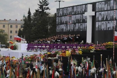 La ceremonia din piaţa principală a Varşoviei au participat peste 100.000 de oameni. S-au ţinut două minute de reculegere şi au fost rostite discursuri, printre oficialii care au luat cuvântul fiind premierul Donald Tusk şi preşedintele interimar Bronislaw Komorowski.