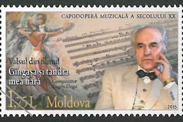 Marca înfăţişează portretul compozitorului Eugen Doga, iar în fundal o pereche de dansatori valsând şi partitura valsului din filmul Gingaşa şi tandra mea fiară, se menționează într-un comunicat de presă al Întreprinderii de Stat „Poşta Moldovei”.