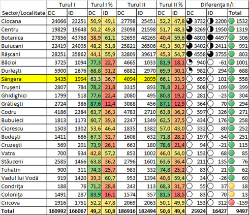 Dacă cei mai mulţi alegători Dorin Chirtoacă îi are în suburbiile capitalei (24% din voturi), atunci Igor Dodon se bazează într-o măsură chiar mai mare pe electoratul din sectorul Botanica, unde are 26% din votanţi. În acelaşi timp, Dodon îşi are doar 12% din simpatizanţi printre alegătorii din suburbii, în timp ce Chirtoacă are 17% din propriul electorat domiciliat la Botanica. Mai mulţi alegători ca la Botanica, Dorin Chirtoacă mai are doar la Râşcani (18%). În tabelul alăturat puteţi observa, în ultimele trei coloane: cu câte voturi mai mult au acumulat Chirtoacă şi Dodon în turul II şi câte voturi a recuperat/câştigat Chirtoacă, comparativ cu Dodon, faţă de primul tur.