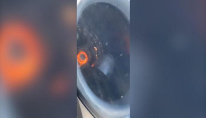Imagini surprinse de unul dintre pasageri arată cum o componentă de metal era blocată în interiorul motorului, în timp ce avionul se afla în aer.