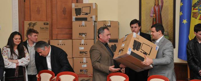 Computerele au fost oferite de Departamentul pentru Românii de Pretutindeni a Guvernului României, în cadrul unui proiect comun cu Primăria municipiului Chişinău privind susţinerea învăţământului de limbă română de dincolo de Nistru.