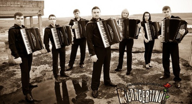 Ansamblul „Concertino” a fost fondat pe 18 octombrie 2003. Trupa are în componenţa sa şapte acordeonişti, un basist, un pianist şi un toboşar, toţi absolvenţi ai Academiei de Muzică, Teatru şi Arte Plastice din Moldova. Din 2007, „Concertino” a fost luat sub aripa protectoare a prestigioasei Săli cu Orgă din Chişinău. De-a lungul timpului, trupa a susţinut numeroase turnee în Italia, Franţa, Danemarca, Germania, Austria, Luxemburg, China, Belgia, Rusia şi altele.
