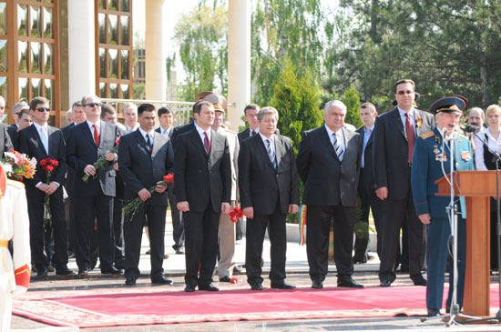 „Acest război nu a început la ordinul unui soldat, ci la ordinul celor care au dorit să instaureze dictatura şi să acapareze alte teritorii. Nu poartă vina cei care au luptat, ci acei care au dat ordine. De aceea, am hotărât să-i reunim azi pe toţi veteranii celui de-al Doilea Război Mondial – fie că au luptat în Armata Sovietică, fie că au luptat în Armata Română”, a spus Ghimpu. Şi prim-ministrul Vlad Filat a remarcat faptul că este pentru prima dată când veteranii Armatei Sovietice şi cei ai Armatei Române au fost invitaţi să sărbătorească împreună. „În acest an sărbătoarea de 9 mai se desfăşoară sub un nou simbol – cel al reconcilierii. Numai jertfa de sine a oamenilor a asigurat pacea, prin curajul fraţilor şi taţilor noştri. E un bun prilej nu numai pentru comemorare, dar şi pentru reflecţie”, a spus premierul. Comemorarea celor care s-au jertfit pentru ca astăzi să trăim în pace ar trebui să consolideze societatea, este un sacrilegiu să foloseşti această zi pentru a semăna dezbinare, au menţionat pentru presă şi ceilalţi lideri ai Alianţei pentru Integrare Europeană. Ei au menţionat că la 9 mai serbează şi Ziua Europei, chiar dacă în acest an în RM, oficial, ea va fi marcată pe 15 mai. Totodată, ei au criticat dur felul în care au ales să se manifeste în această zi comuniştii moldoveni, care au aşteptat ca actuala conducere să plece de la Memorial pentru a-şi organiza propria depunere de flori.