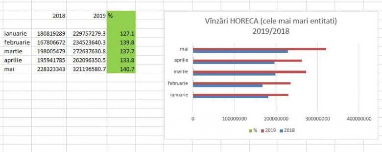 Buna dimineata! Mai avem vre-un sector, care a crescut cu așa ritmuri în 2019 față de 2018? Cu excepția IT, care are un regim fiscal (cu totul) special – nu cred.Este efectul ajustării legislației noastre fiscale la practica de succes a Uniunii Europene (în materie de aplicate TVA pentru sectorul HORECA).