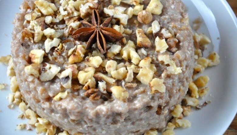Ingrediente: 1 kg de arpacaş (orz măcinat dur), dar se poate folosi şi grâu pisat, 2 ceşti de stafide, 2 căni de nucă rasă, 2 ceşti cu miere, o linguriţă de scortişoară, coaja de la o lămâie şi de la o portocală, 500 g de zahăr, 1 fiolă esenţă de vanilie, 1 fiolă esenţă de rom, o linguriţă de sare; pentru ornat: pesmet de pâine sau biscuiţi, cacao, bomboane colorate, miez de nucă