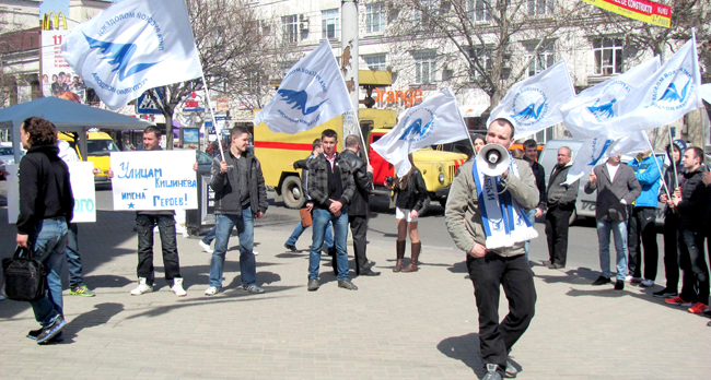 Liga Tineretului Rus şi-a reluat campania începută în toamna anului 2011, al cărei scop consta în redenumirea străzii Ioan Cuza Vodă în Aleksei Belski. Acţiunea de protest a avut loc ieri, 3 aprilie, în faţa Primăriei municipiului Chişinău. Între 20 şi 30 de protestatari s-au adunat aici şi au scandat diferite lozinci. Între altele, ei i-au sugerat edilului Chişinăului, Dorin Chirtoacă, „să-şi construiască un nou bulevard, pe care să-l numească Cuza Vodă”. Forţele de ordine au avut grijă ca protestatarii să se menţină în perimetrul stabilit de autorizaţia eliberată de autoritatea publică locală, deşi manifestanţii se înghesuiau la intrarea în primărie. Tinerii purtau pancarte scrise în limba rusă: „Trăiesc pe strada Belski”, „Străzilor Chişinăului – numele eroilor” .