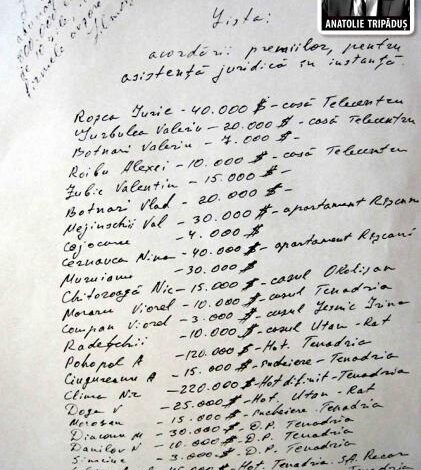De aceeași părere sunt și unii pretinși destinatari ai sumelor notate în această listă. „Dacă sunt indicate dosarele Tenadria, Utan-Rat și altele legate în mod direct de Tripăduș, cine mai putea să facă nebunia? Și cum Plahotniuc a dat indicații de a fi plătiți acești bani, dacă e semnătura falsă a lui Filimon? Nu am altă explicație decât că Tripăduș își iese din minți”, ne-a spus Dorin Compan, procuror la Anticorupție care, conform listei, ar fi primit un onorariu de 3 mii USD.