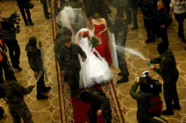 Deși s-au cunoscut relativ recent, cei doi n-au mai vrut să aștepte nici alegerile anticipate promise de președintele Ianukovici, nici relansarea vectorului european al țării și s-au căsătorit ieri, la o aruncătură de băț de fieful protestelor din capitala Ucrainei.