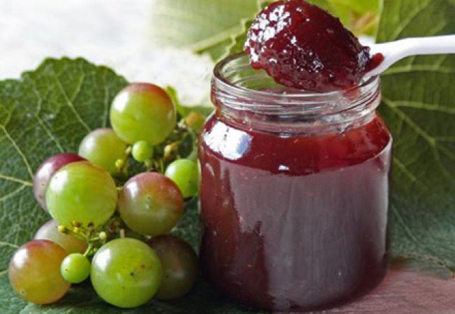 – Punem strugurii, rozmarinul și vinul și coaja de lămâie într-o cratiță încăpătoare. Adaugăm apă pentru a acoperi complet fructele și aducem totul la punctul de fierbere, amestecând ocazional. Acoperim și lasăm să clocotească cinci minute, apoi pasăm strugurii cu un zdrobitor de cartofi. Ținem pe foc încă zece minute și mai zdrobim strugurii de câteva ori.