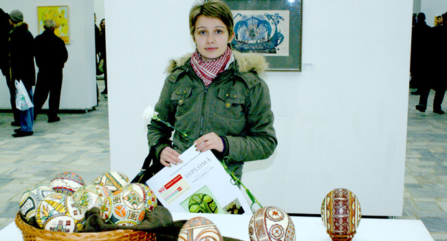 Dar creaţiile artistei Ecaterina Saviţchi sparg tiparele acestui meşteşug de sezon, plasându-l în dimensiunea atemporală a artei propriu-zise. Cu multă răbdare, tact şi tot atâta meticulozitate, tânăra plasticiană transpune pe suprafaţa oului de struţ o diversitate de elemente picturale, decupate parcă din operele avangardiste ale lui Klimt. Acestea redau motive preluate de pe ţesăturile şi straiele tradiţionale româneşti, elemente celtice şi persane, figuri zoomorfe, antropomorfe şi vegetale de o exuberanţă regală.