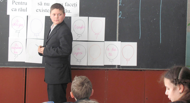 Lecţia de educaţie civică, de regulă, decurge într-un mod interactiv. Joi, când le-am făcut o vizită, profesoara a pregătit o mulţime de aplicaţii la tema „Abuzul şi violenţa. Riscurile acestora”. Unii elevi au fost foarte activi, au răspuns la întrebări şi au primit note mari, chiar dacă pe alocuri nu s-au exprimat corect româneşte sau au avut nevoie de ajutorul profesorului pentru a traduce o frază. Alţii însă au fost reticenţi şi categoric n-au vrut să răspundă la lecţie decât în limba lor maternă.