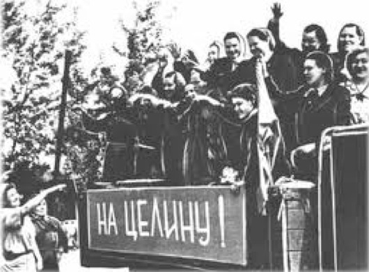 În perioada anilor ’50 –’60, ca rezultat al campaniei de desțelenire, în stepele kazahe, au fost trimiși în jur de 1,5 milioane de persoane din întreaga Uniune Sovietică, iar în jur de 27 de milioane de hectare de stepă au fost desțelenite.