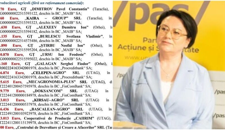 Transferuri s-au efectuat și către producători agricoli (fără un raționament comercial). Printre aceștia se numără și compania administrată de actuala deputată PAS Maria Acbaș, suma fiind de aproape 20 de mii de euro, potrivit SIS.