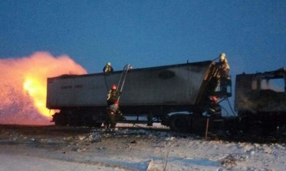 Flăcări pe traseul R-32: un camion încărcat cu floarea-soarelui a ars din mers