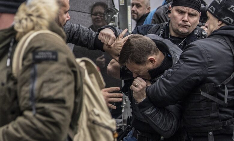 Înaintea adunării, poliţia a reţinut în jur de 50 de persoane şi a confiscat artificii, bastoane telescopice, boxuri şi arme de foc.