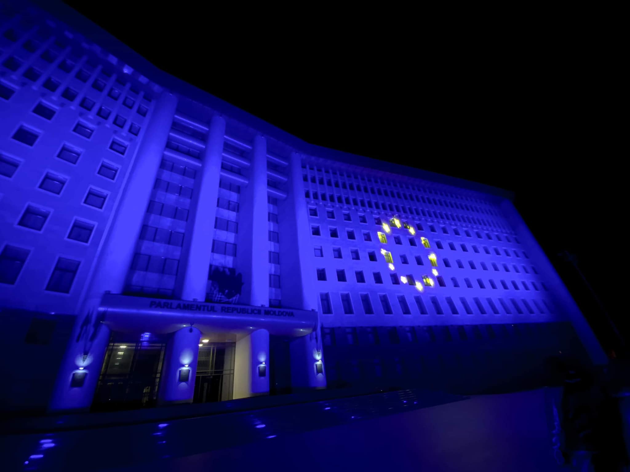 Clădirea Parlamentului Republicii Moldova a fost iluminată, marți-seară, în culorile Uniunii Europene, cu ocazia Zilei Europei, marcată anual pe 9 mai.